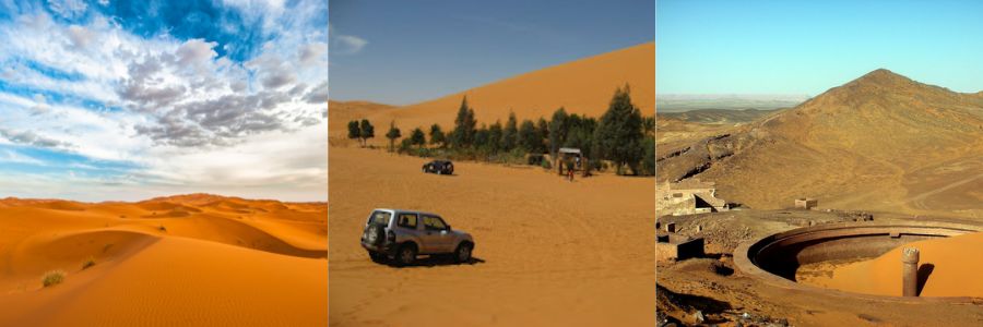 Atrévete con la legendaria pista prohibida y la pista Citroën, sigue los pasos del Rally Dakar y pon a prueba tu destreza al volante rodeando las dunas de Erg Chebbi y Erg Chegaga. Descubre las historias de las medinas, la antigua mina francesa de Mfis, la cárcel portuguesa y el vibrante mercado de Rissani.